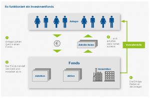 Das Geld der Sparer wird in dem jeweiligen Investmentfonds gebündelt und von Experten entsprechend der zugrunde liegenden Anlagestrategie angelegt. Anders als beispielsweise beim Kauf einzelner Wertpapiere müssen die Sparer jedoch selbst keine weiteren Anlageentscheidungen treffen. Denn Fondsmanager beobachten das Marktgeschehen und treffen die Anlageentscheidungen im Interesse der Anleger. Zugleich können die Fondsmanager mit großen Kauf- und Verkaufsaufträgen günstigere Transaktionen vornehmen, als dies einzelnen Kleinanlegern möglich wäre. Die Sparer erhalten Fondsanteile entsprechend ihrer Einzahlungen und nehmen so auch schon mit kleinen Beträgen Teil an den Entwicklungen der internationalen Kapitalmärkte.