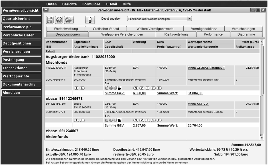 professionelle Vermögensübersicht per 30.03. / 30.06. / 30.09. / 30.12.